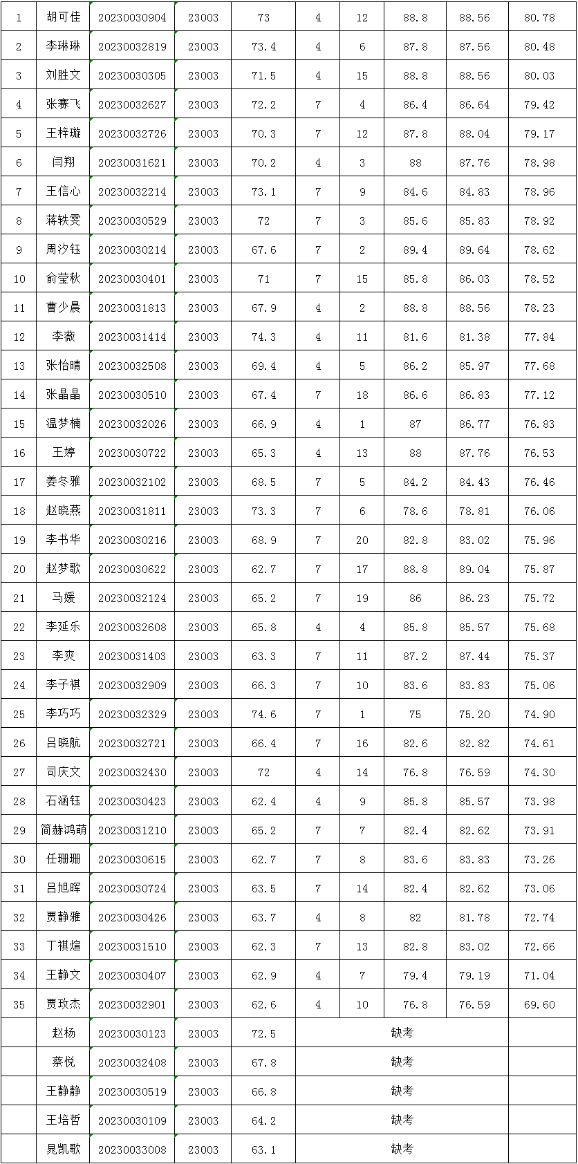 一、考试总成绩