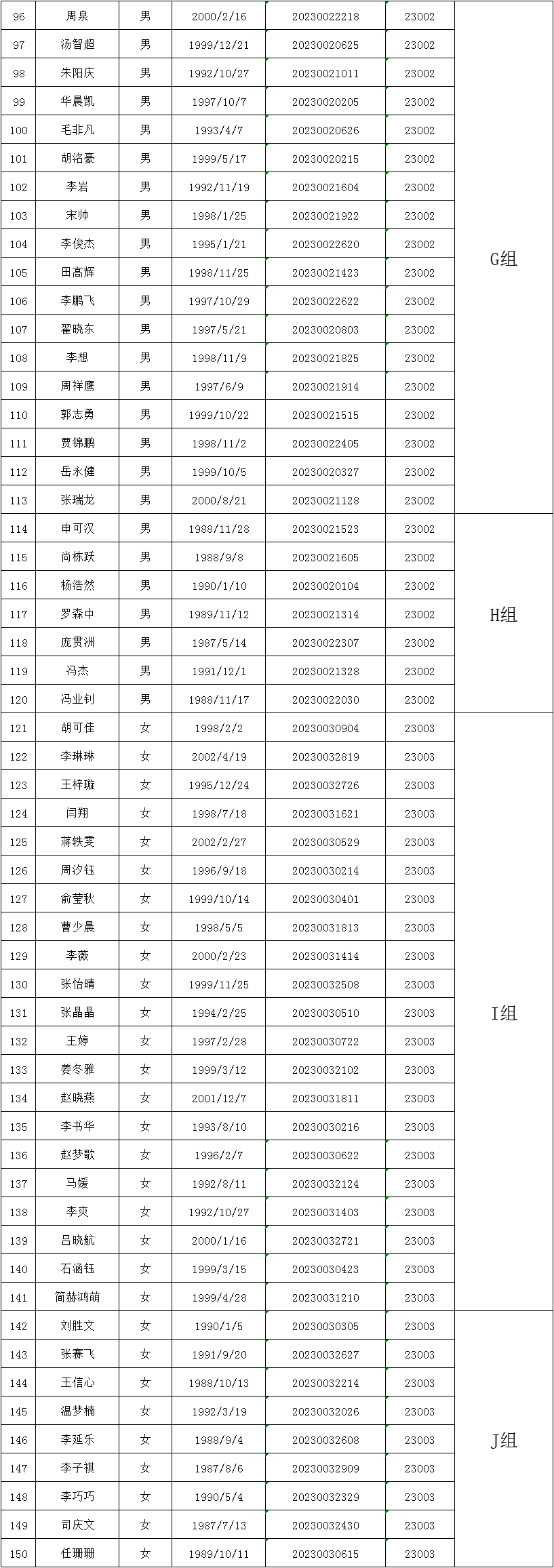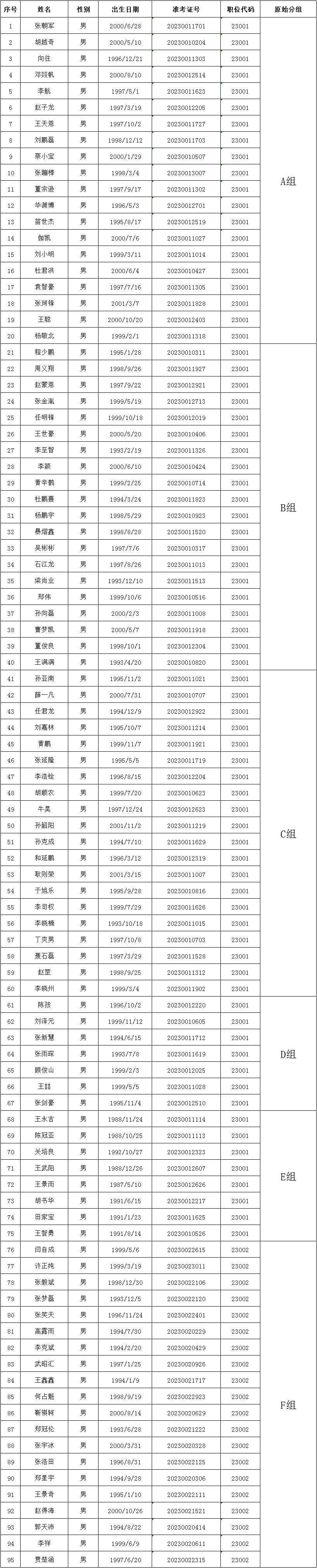 附件2:平顶山市公安局2023年招聘警务辅助人员进入体能测试人员名单及原始分组